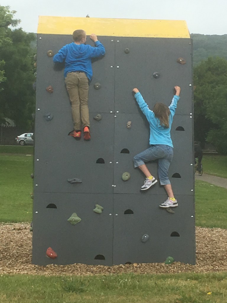 Kids stop on the climbing wall