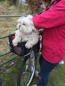 Cleo getting ready in her basket